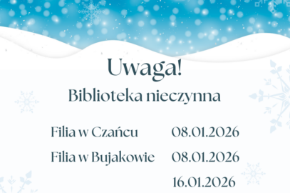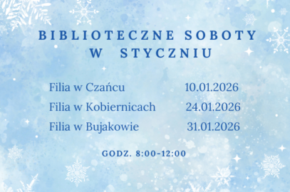 Biblioteki będą nieczynne: Biblioteka w Porąbce 24.12.2025 Filia w Bujakowie 23.12.2025-02.01.2026 Filia w Czańcu 23-24.12.2025, 31.12.2025 – 02.01.2026 Filia w Kobiernicach 22-24.12.2025, 31.12.2025 – 05.01.2026 READ MORE