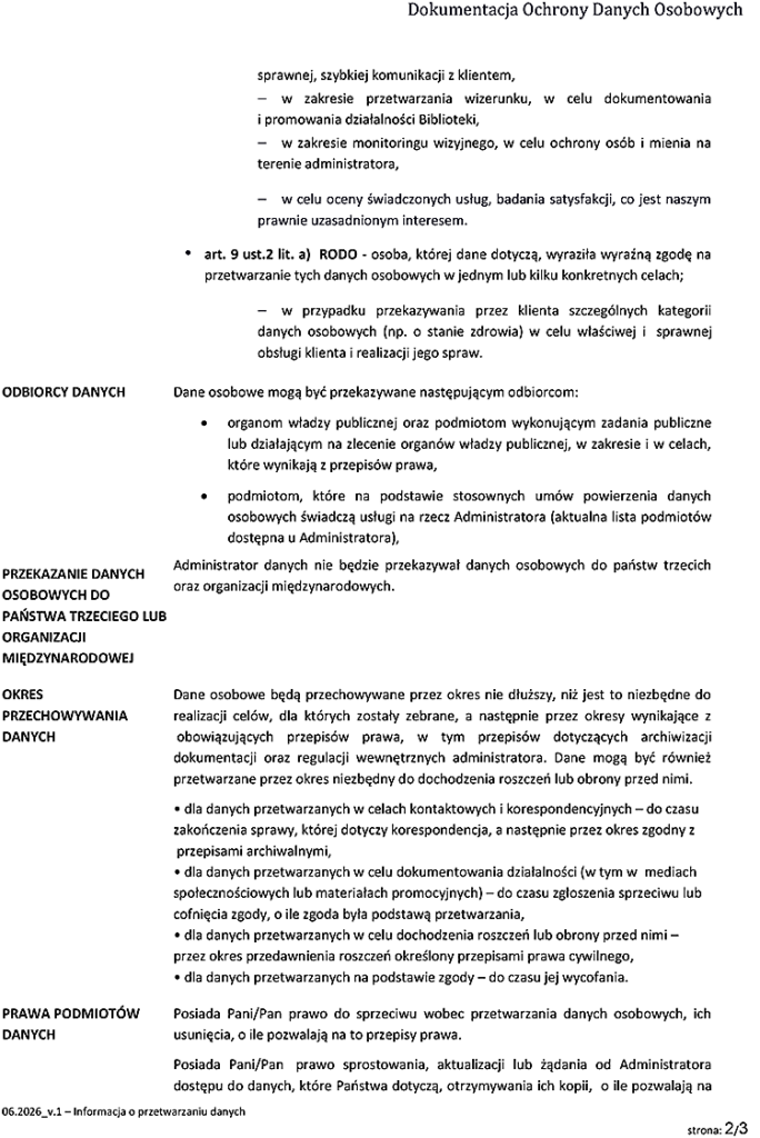 Dane są przetwarzane na podstawie ustawy z dnia 27 czerwca 1997 r. o bibliotekach.