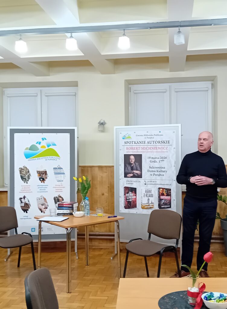 Robert Michniewicz jako emerytowany oficer wywiadu, opowiadał o kulisach swojej pracy z dużą swobodą, ale też z wyczuciem granic. Szczególnie interesujące było to, jak spełnił swoje marzenia o pisaniu książek. Podkreślał, że doświadczenia zawodowe stały się dla niego inspiracją, ale równie ważna była wyobraźnia. Podczas spotkania zaproszony gość szczególnie ciekawie opowiadał o powstawaniu swoich książek: cyklu „Partnerzy”, „Dolina Szpiegów” oraz „Agent z Rijadu”. Podkreślał, że choć jego historie są fikcją, to wyrastają z prawdziwych doświadczeń i obserwacji z pracy w wywiadzie. Najwięcej emocji wzbudziła opowieść „Agent z Rijadu”, którą określił jako książkę najbardziej osobistą. Zdradził, że włożył w nią najwięcej własnych przeżyć i refleksji, dlatego była dla niego szczególnie ważna i wymagająca. Z kolei „Partnerzy” i „Dolina Szpiegów” pokazały najbardziej „warsztatową” stronę jego pisania – jak konstruuje intrygę, bohaterów i napięcie, dbając o realizm, ale jednocześnie o atrakcyjność dla czytelnika. Całość jego opowieści pokazała, że pisanie dla niego to nie tylko spełnienie marzeń, ale też sposób na uporządkowanie doświadczeń i podzielenie się nimi w przystępnej, literackiej formie. Spotkanie miało przyjazną atmosferę, a autor chętnie odpowiadał na pytania, dzieląc się refleksjami o pracy, literaturze i życiu po służbie.